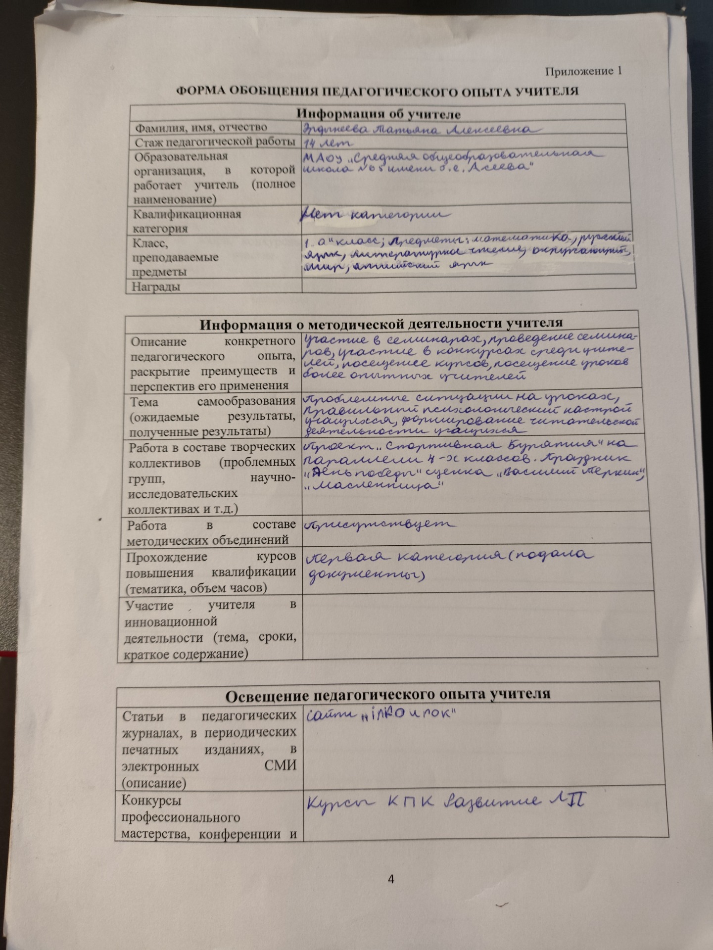 Анализ педагогического опыта учителя начальных классов